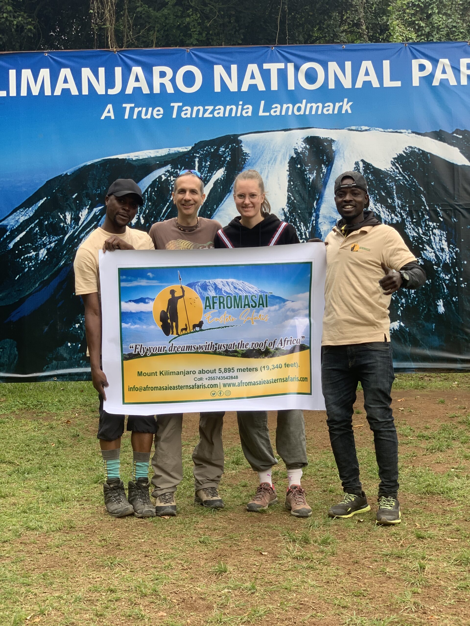 The trek begins near the village of Nale Moru and passes through forest, moorland, alpine desert, and finally the glacier-covered summit zone in Kilimanjaro National Park.